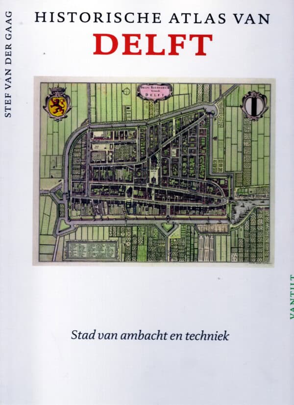 De plattegrond van Delft, ontstaan in een veenontginningslandschap, is bepaald door de afvoer van water. Een gedolven waterloop, Oude Delft genaamd (vroeger: de Delf), verbond het Vliet en de Schie met elkaar. Bijna loodrecht daarop lagen de kavelsloten. Het belang van Delft blijkt in de Gouden Eeuw uit de derde plaats in de rij van stemhebbende Hollandse steden. De stad was met haar militaire magazijnen en werkplaatsen een ware wapenplaats. Dankzij het ‘eigen’ Delfshaven was Delft ook vertegenwoordigd in de colleges van de Admiraliteit van de Maze en de Grote Visserij en nauw betrokken bij het werk van de voc. De opbloei was in de veertiende eeuw begonnen met de bier- en textielproductie. In de vijftiende eeuw was Delft aanvankelijk nog een echte ‘bierstad’, maar daar kwam verandering in toen het fameuze ‘Delfts blauw’ opkwam. De stad floreerde, al werd ze getroffen door twee rampen die het stadsbeeld ingrijpend veranderden: een buskruitramp en een enorme stadsbrand. In de negentiende eeuw werd Delft een echte fabrieksstad. Ook de komst van een nationale ingenieursopleiding was van grote betekenis. Na 1945 groeiden de bevolking, de industrie en de Technische Hogeschool zo explosief, dat grote gebiedsuitbreidingen noodzakelijk waren. Al deze ontwikkelingen worden beschreven én zichtbaar gemaakt in het prachtige beeldmateriaal, waaronder speciaal voor deze atlas door de auteur vervaardigde of bewerkte kaarten.