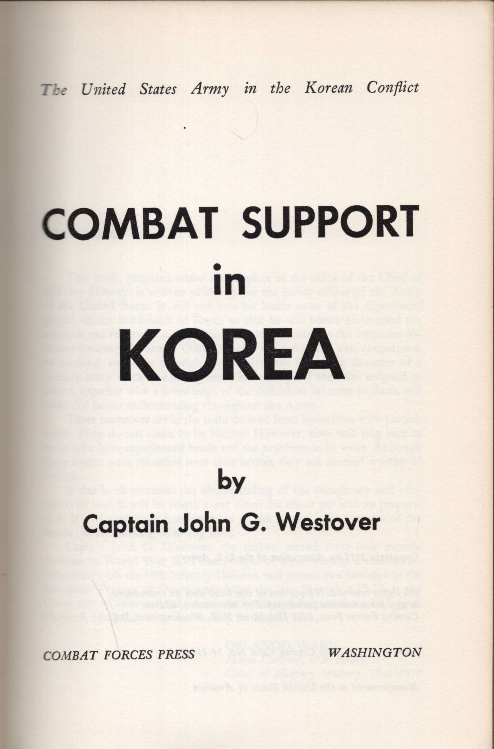 A collection of interviews with several hundred officers and enlisted men who served in the Korean conflict in all the arms and support services of the U.S. Army, except Infantry, Artillery, and Armor.